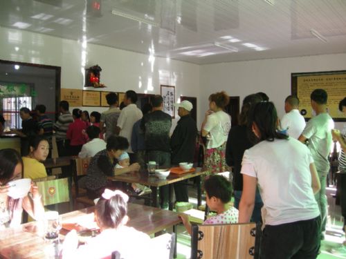 食客們拿著小票自覺的排起長隊(duì),都排到門外了,只為等待著那一碗噴香誘人的蘭州牛肉拉面。
