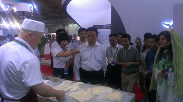 以上數(shù)圖為公司總經(jīng)理梁順儉陪同蘭州市市長袁占亭,蘭州市食藥局局長楊繼良及其他各級領(lǐng)導(dǎo)在北京國際會展中心視察金味德蘭州牛肉拉面展臺。