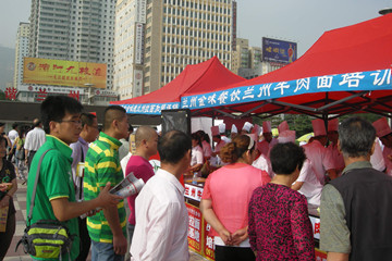 活動(dòng)現(xiàn)場(chǎng),公司下屬的分公司“蘭州牛肉面專業(yè)技術(shù)培訓(xùn)中心”的學(xué)員,向廣大市民群眾展示了拉面的系列技術(shù),包括溜條、拔劑子、拉面,其中拉面方面,表演了二細(xì)、三細(xì)、大寬、韭葉、蕎麥棱等,另外,學(xué)員還表演了公司主營(yíng)產(chǎn)品蔬菜營(yíng)養(yǎng)面,吸引了眾多觀眾圍觀、咨詢,場(chǎng)面火熱。同時(shí),公司的蘭州牛肉拉面加盟連鎖,也備受關(guān)注,咨詢的人接連不斷。