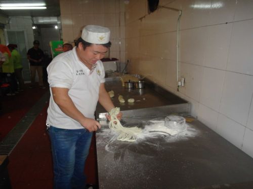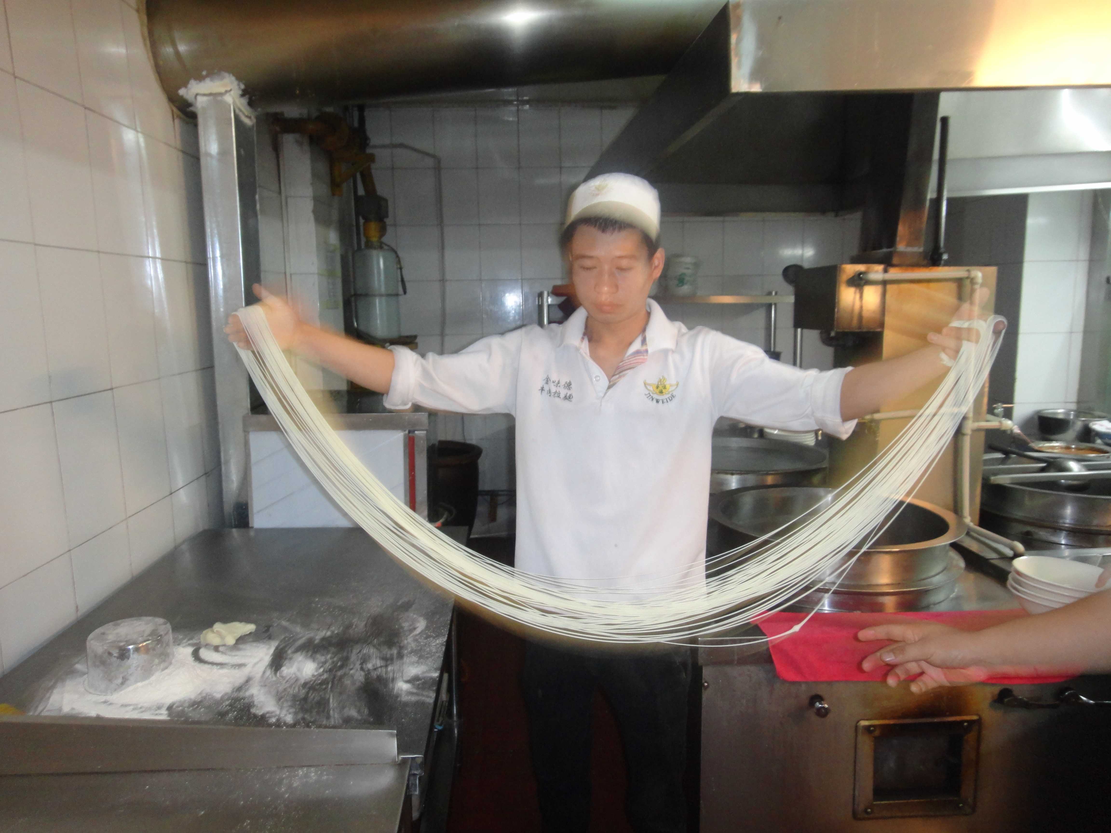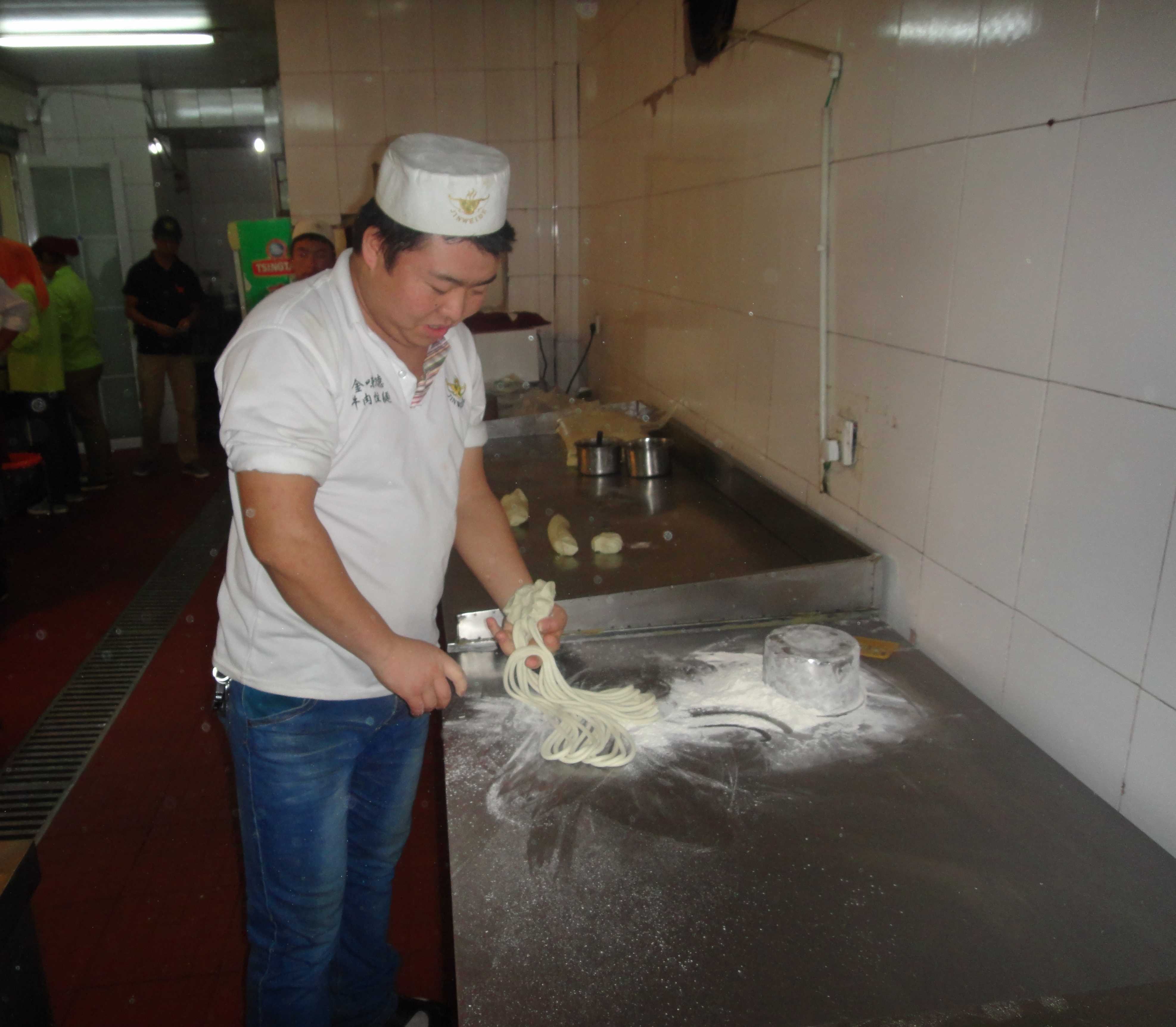 伏經(jīng)理考核加盟店員工拉面技術(shù)