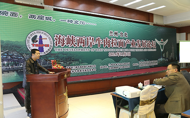 為推動(dòng)蘭州牛肉拉面行業(yè)及產(chǎn)業(yè)發(fā)展,11月2日上午在西北賓館召開了蘭州•臺(tái)北海峽兩岸牛肉拉面產(chǎn)業(yè)發(fā)展論壇,此次論壇,由甘肅省蘭州牛肉拉面產(chǎn)業(yè)聯(lián)合會(huì)和臺(tái)北市牛肉面交流發(fā)展協(xié)會(huì)聯(lián)合主辦,甘肅省蘭州拉面產(chǎn)業(yè)聯(lián)合會(huì)特邀了臺(tái)北市牛肉面交流發(fā)展協(xié)會(huì)理事長(zhǎng)鄭正中先生及一行三人參會(huì)。蘭州市政府主管部門領(lǐng)導(dǎo),蘭州牛肉拉面相關(guān)產(chǎn)業(yè)學(xué)者、專家、海峽兩岸牛肉拉面成功經(jīng)營(yíng)者交流發(fā)言,當(dāng)天參會(huì)代表100余人參加了論壇交流。據(jù)悉,臺(tái)灣與甘肅兩地聯(lián)合舉辦牛肉面產(chǎn)業(yè)論壇,交流經(jīng)驗(yàn)、碰撞思想,尚屬首次。