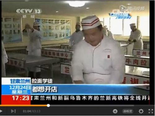 2014年12月中央電視臺《CCTV-13》新聞頻道慕名前來拍攝絲綢之路蘭州食文化《蘭州牛肉面》,并找到了蘭州牛肉面歷史上首部文化技術專著《蘭州牛肉拉面寶典》主編,蘭州牛肉拉面行業(yè)協(xié)會秘書長,甘肅興隴蘭州牛肉拉面職業(yè)培訓學校校長,蘭州烹飪協(xié)會牛肉拉面培訓基地董事長梁順儉先生了解蘭州牛肉拉面走向世界之路的詳細歷程。