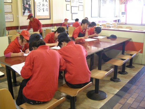員工們在認真的填寫試卷