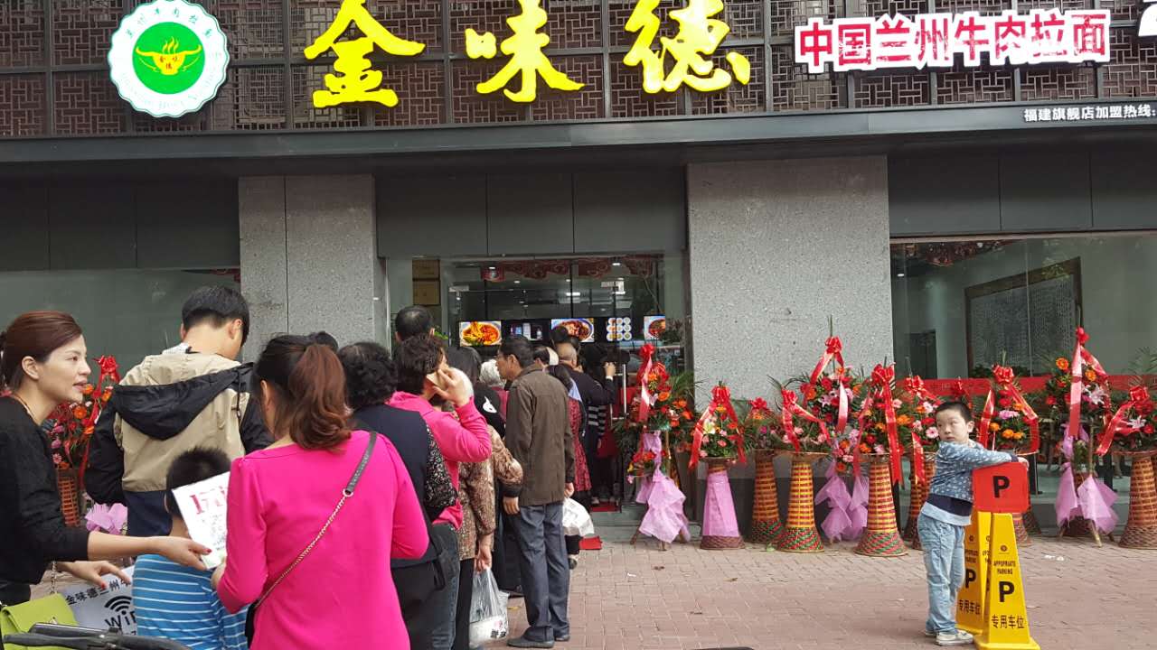 2015年11月14日,“金味德”蘭州牛肉面再傳捷報,金味德蘭州牛肉拉面福州店隆重開業(yè)。金味德福州店的開業(yè),標(biāo)志著甘肅金味餐飲有限公司的多元化發(fā)展戰(zhàn)略又有了新的突破,至此,甘肅金味餐飲有限公司的產(chǎn)業(yè),已涉及蘭州牛肉拉面專業(yè)技術(shù)培訓(xùn)、拉面人才輸送,新產(chǎn)品研發(fā)、蘭州牛肉拉面調(diào)味品生產(chǎn)、銷售、品牌加盟、蘭州拉面書籍編寫發(fā)行等多個領(lǐng)域,彼此之間,既相互獨立又關(guān)聯(lián)協(xié)作,共同指向“金城美食譽滿九洲,味借牛勢香飄四!边@個宏大的企業(yè)遠景。