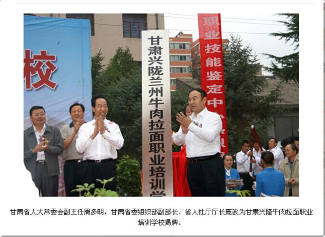 甘肅興隴蘭州牛肉拉面職業(yè)培訓學校為響應國家“大眾創(chuàng)業(yè)、大眾創(chuàng)新”號召,為推動蘭州牛肉拉面品牌規(guī)范化、職業(yè)化、產(chǎn)業(yè)化發(fā)展,促進城鄉(xiāng)勞動者實現(xiàn)技能成才、技能就業(yè),政府相關部門委托我校進行全免費培訓蘭州牛肉拉面技術人才。