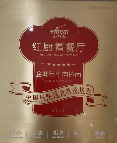 金味德蘭州牛肉拉面獲得中餐紅廚帽餐廳,不僅是紅廚帽委員會(huì)對(duì)百年蘭州牛肉拉面的認(rèn)可,更是對(duì)金味德蘭州牛肉拉面的肯定。金味德自創(chuàng)辦以來(lái),一直致力于蘭州牛肉拉面發(fā)展,傳承,此次獲得紅廚帽餐廳的殊榮將更加激勵(lì)金味德砥礪前行,為蘭州牛肉拉面產(chǎn)業(yè)化發(fā)展做出更大的貢獻(xiàn)。