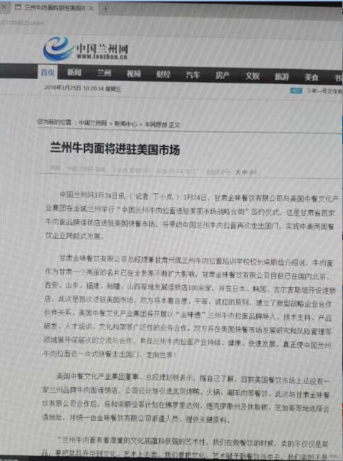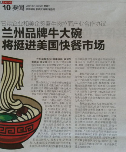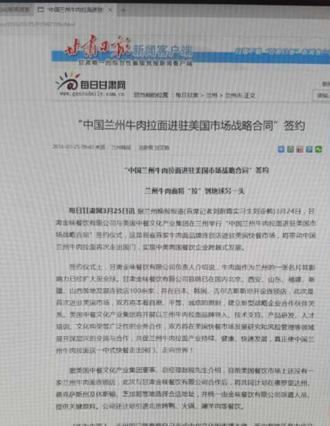 中美蘭州牛肉拉面產(chǎn)業(yè)發(fā)展戰(zhàn)略合作成功簽約 蘭州牛肉面將進駐美國市場