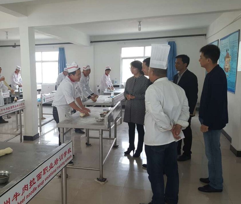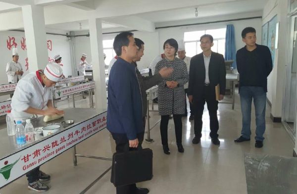 2016年4月14日,蘭州市商務(wù)局局長王黎、副局長王紹榮、飲食服務(wù)處處長鄧濤一行人前往蘭州市牛肉拉面培訓(xùn)基地——甘肅興隴蘭州牛肉拉面職業(yè)培訓(xùn)學(xué)校考察指導(dǎo)工作,并詢問了蘭州牛肉拉面產(chǎn)業(yè)創(chuàng)客孵化基地籌備情況。