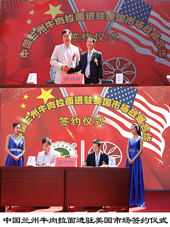 5月9日,由蘭州市城關區(qū)主辦,甘肅金味餐飲有限公司承辦的蘭州牛肉拉面產業(yè)孵化園啟動儀式在蘭州城關區(qū)魚兒溝基地舉行。金味德中國蘭州牛肉面體驗工坊、中國蘭州牛肉拉面培訓基地、鑫味德蘭州牛肉拉面調味廠、甘肅凱樂(拉面人才)勞務派遣有限公司,蘭州牛肉拉面產業(yè)創(chuàng)新、創(chuàng)業(yè)孵化基地、蘭州牛肉拉面新三板掛牌項目等同時簽約。蘭州牛肉拉面新三板上市掛牌券商簽約儀式的舉行,標志著蘭州牛肉拉面首家“新三板”上市企業(yè)即將誕生。來自美國、日本、韓國、加拿大、印度尼西亞、德國等國外合作商,來自國內山東、福建等地合作商以及境內外30余家媒體共同鑒證了這一歷史性時刻。