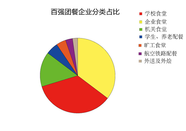 百強(qiáng)企業(yè)團(tuán)餐主營項(xiàng)目分類為可分為 7 類,學(xué)校食堂占比 35.48% ,企業(yè)食堂占比 34.9% ,機(jī)關(guān)食堂占 15% ,學(xué)生營養(yǎng)餐和養(yǎng)老配餐占 5.2% ,礦工食堂 4.4% ,航空鐵路配餐占比還不到 3% ,外送及外燴最少剛剛到 2% 。團(tuán)餐項(xiàng)目 70% 流向的還是學(xué)校以及企業(yè)。