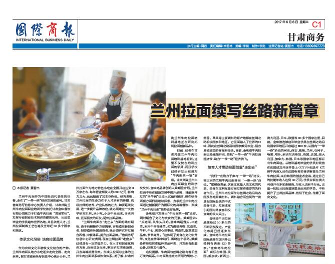 “我們一直致力于參與‘一帶一路’建設(shè),將正宗的蘭州牛肉拉面推向‘一帶一路’沿線。”梁順儉表示,飲食文化是人類(lèi)文化的代表,美食在文明互鑒方面發(fā)揮著重要的先行者作用。蘭州牛肉拉面作為絲綢之路沿線各國(guó)及各地原輔材料、調(diào)料融合而出現(xiàn)的一款具有國(guó)際血統(tǒng)的中式美食代表,發(fā)展速度引起國(guó)內(nèi)外食客和投資商的極大關(guān)注。