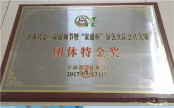 甘肅省第二屆“廚師節(jié)”暨甘肅省“家盛”杯綠色食品烹飪大賽上,金味德榮獲團(tuán)體特金獎。
