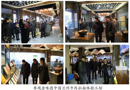 在中國蘭州牛肉拉面培訓(xùn)基地校長的陪同講解下,考察團(tuán)先后參觀了甘肅興隴蘭州牛肉拉面職業(yè)培訓(xùn)學(xué)校、蘭州鑫味德牛肉面調(diào)味品廠、金味德中國蘭州牛肉拉面體驗工坊,詳細(xì)的聽取了蘭州牛肉拉面近年來創(chuàng)新創(chuàng)業(yè)、扶貧培訓(xùn)、解決就業(yè)及走出去等方面的發(fā)展。