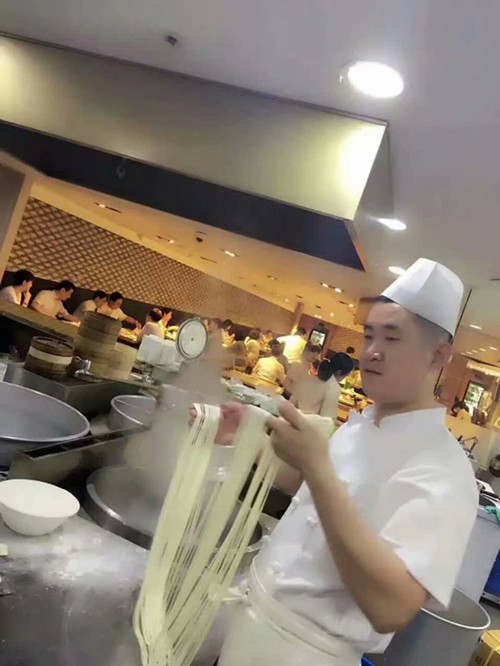一直記得那天廚師拉面的姿態(tài),像是賦予了拉面一種舞動。他雙手抓住面劑子兩頭,一拉一折,一抻一扯,開開合合,拉出來的面條粗細均勻、不粘不斷,在面條下鍋前,還要展開臂膀,把面條在案板上甩兩下,案子上的面粉就象云霧一樣散開來,然后面條嗖的一下就被投到鍋里,蓮花一樣在沸騰的水里旋轉(zhuǎn)……整個拉面過程只有幾秒鐘,卻叫人眼花繚亂。