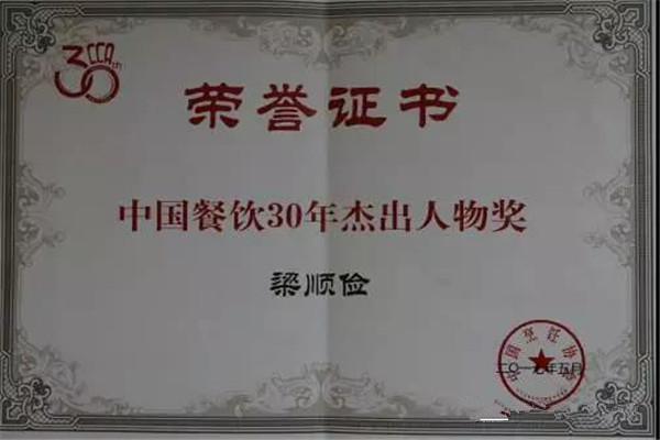 2017年金味德品牌創(chuàng)始人梁順儉被中國烹飪協(xié)會(huì)評(píng)為中國餐飲三十年杰出人物。