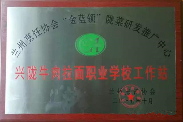 在蘭州烹飪協(xié)會第四屆第一次理事會暨隴菜創(chuàng)新發(fā)展研討會上,甘肅興隴蘭州牛肉拉面職業(yè)培訓學校被評選為蘭州烹飪協(xié)會“金藍領(lǐng)”隴菜研發(fā)推廣中心工作站。