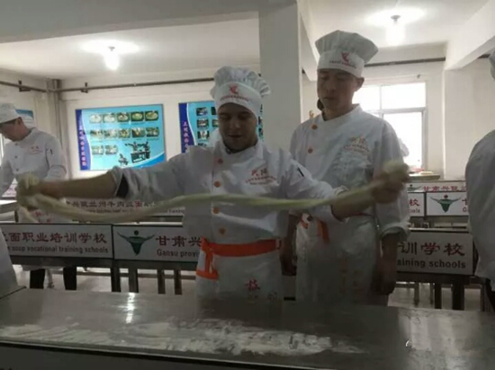 吳榮剛今年1月專程從西班牙漂洋過(guò)海赴蘭州學(xué)習(xí)拉面技藝!芭H饷嫣贸粤,剛來(lái)蘭州,一天最多吃過(guò)六碗!背料滦陌輲煂W(xué)習(xí)的吳榮剛拉面技術(shù)日趨成熟,他說(shuō),日后將在西班牙開(kāi)一家中式面館。