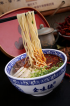 講究"三遍水,三遍灰,九九八十一遍揉"。其中的灰,實(shí)際上是堿,卻又不是普通的堿,是用戈壁灘所產(chǎn)的蓬草燒制出來的堿性物質(zhì),俗稱蓬灰,加進(jìn)面里,不僅使面有了一種特殊的香味,而且拉出來的面條爽滑透黃、筋道有勁。