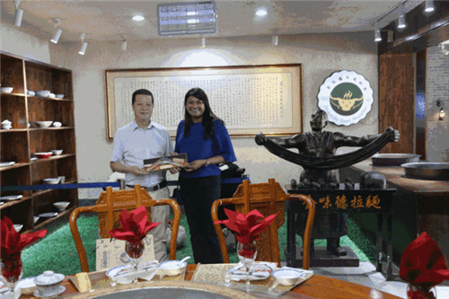 代表團(tuán)在中國蘭州牛肉拉面體驗工坊對牛肉面始祖“熱鍋子面”進(jìn)行了解。