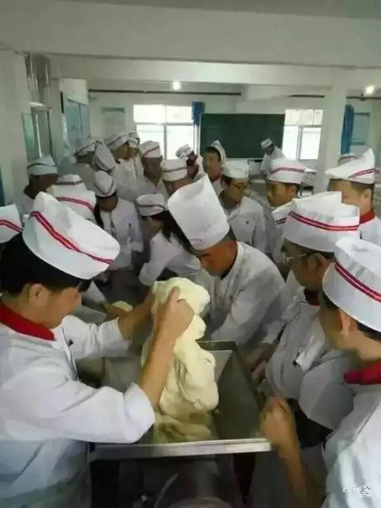 拉面培訓(xùn)學(xué)校教授學(xué)員使用揉面出劑一體機(jī)