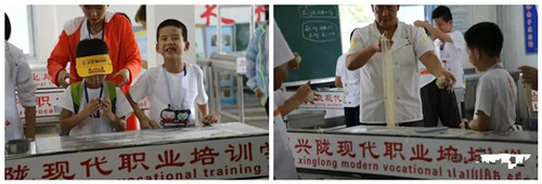 拉面體驗(yàn)在甘肅興隴蘭州牛肉拉面職業(yè)培訓(xùn)學(xué)校開(kāi)展,學(xué)校有專(zhuān)業(yè)的設(shè)備、專(zhuān)業(yè)的拉面老師,小朋友可以在老師的指導(dǎo)下,粗細(xì)圓扁任意拉,拉自己喜歡的面型,盡情釋放自己的創(chuàng)造天性。