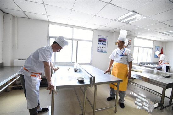 從事拉面工作45年的古立新老師傅正在耐心地指導(dǎo)學(xué)員。