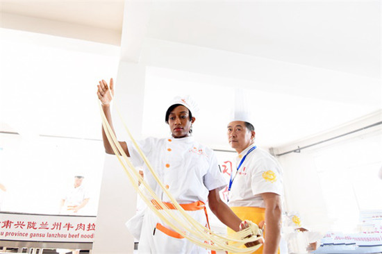 和面、揉面、拉面......標準班里,學(xué)員們動作漂亮利落,手法地道嫻熟。來自尼日利亞今年25歲的金佑琪,是標準班的一名學(xué)員。“我第一次吃牛肉面的時候,就覺得它的味道很有意思,我覺得它不僅僅是一碗面,更是一種藝術(shù),可以說,蘭州牛肉面改變了我對中國飲食文化的認識......”,回憶起第一次吃蘭州牛肉面的場景,金佑琪感觸頗深。她還告訴記者,等學(xué)會蘭州牛肉面以后,她要在自己的家鄉(xiāng)尼日利亞開一家牛肉面館,把中國的飲食文化帶回家鄉(xiāng)。