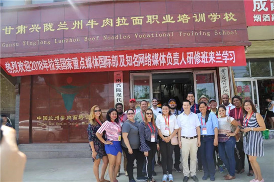 7月31日,“2018年拉美國(guó)家重點(diǎn)媒體國(guó)際部及知名網(wǎng)絡(luò)媒體負(fù)責(zé)人研修班”學(xué)員在甘肅省委宣傳部,蘭州市委宣傳部外宣辦及蘭州牛肉拉面行業(yè)協(xié)會(huì)領(lǐng)導(dǎo)的陪同下分別來(lái)到了中國(guó)蘭州牛肉拉面體驗(yàn)工坊、蘭州牛肉拉面創(chuàng)業(yè)孵化園、興隴蘭州牛肉拉面國(guó)際商學(xué)院、甘肅興隴蘭州牛肉拉面職業(yè)培訓(xùn)學(xué)校參觀采訪。