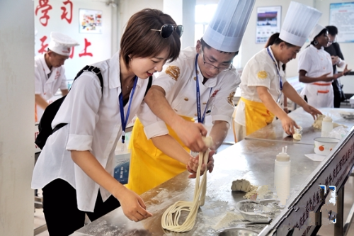 媒體記者現(xiàn)場(chǎng)體驗(yàn)制作牛肉面。