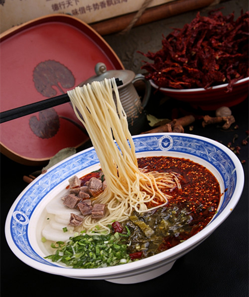 蘭州牛肉面,又稱蘭州清湯牛肉面,是“中國十大面條”之一,是甘肅省蘭州地區(qū)的風(fēng)味小吃。它以“湯鏡者清,肉爛者香,面細者精”的獨特風(fēng)味和“一清二白三紅四綠五黃”,一清(湯清)、二白(蘿卜白)、三紅(辣椒油紅)、四綠(香菜、蒜苗綠)、五黃(面條黃亮),贏得了國內(nèi)乃至全世界顧客的好評。并被中國烹飪協(xié)會評為三大中式快餐之一,得到美譽“中華第一面”。