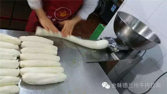 據(jù)介紹,這款揉面出劑一體機(jī)參照手工揉面、溜條、出劑的過程研發(fā)而成,既可以揉面,同時(shí)可以制作出拉面的面劑子。主要用于代替蘭州牛肉拉面、河南燴面、扯面、山西刀削面、福山拉面、西安油潑面等面團(tuán)的人工揉制環(huán)節(jié),省時(shí)省力效率高,面團(tuán)密度增加,面條口感更加筋道、耐泡,還廣泛用于饅頭店、餅子店、蛋糕店、手工面食店等,可以同時(shí)節(jié)省兩個(gè)人力,把人從和面、揉面中解放出來(lái)。目前,這款揉面出劑一體機(jī)已遠(yuǎn)銷國(guó)內(nèi)外,在澳大利亞、韓國(guó)、日本等國(guó),深受牛肉面店老板的青睞。 國(guó)內(nèi)外店面使用揉面出劑一體機(jī)