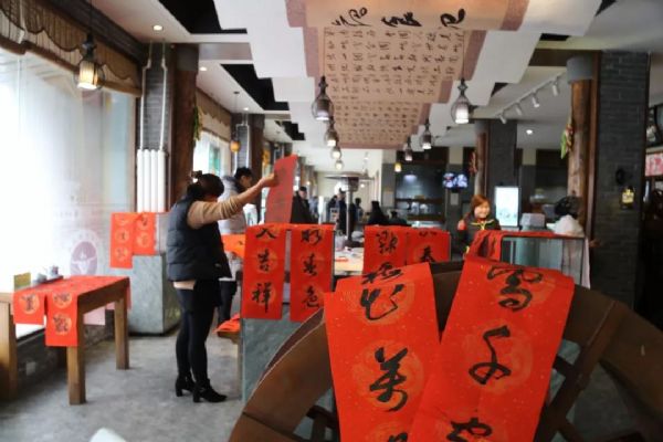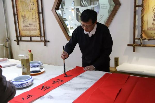 在活動現(xiàn)場,書畫家與公司員工歡聚一堂、共迎新春。各位書畫家飽蘸激情、揮毫潑墨,現(xiàn)場進行創(chuàng)作,畫筆濃墨重彩地描繪著自己的靈感,毛筆揮毫自如精心書寫著對生活的熱愛和感悟,一幅幅風(fēng)格迥異的書畫作品呈現(xiàn)在眾人面前,寬敞明亮的工坊里翰墨飄香,熱鬧非凡。