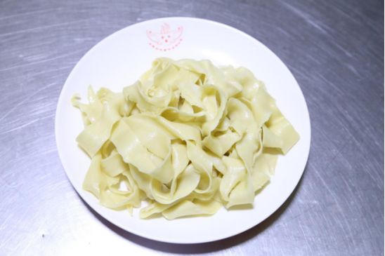 4、寬面面寬8mm左右。一般要四至五手成型。碗中面條根根分明,筋道有彈性,富有嚼勁,有濃郁豪俠氣。