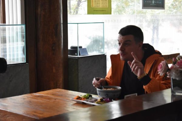 11月5日,人民日?qǐng)?bào)記者、英國(guó)知名網(wǎng)紅、中外文化體驗(yàn)者司徒建國(guó)和他的團(tuán)隊(duì)來(lái)到金味德拍攝蘭州牛肉面。
