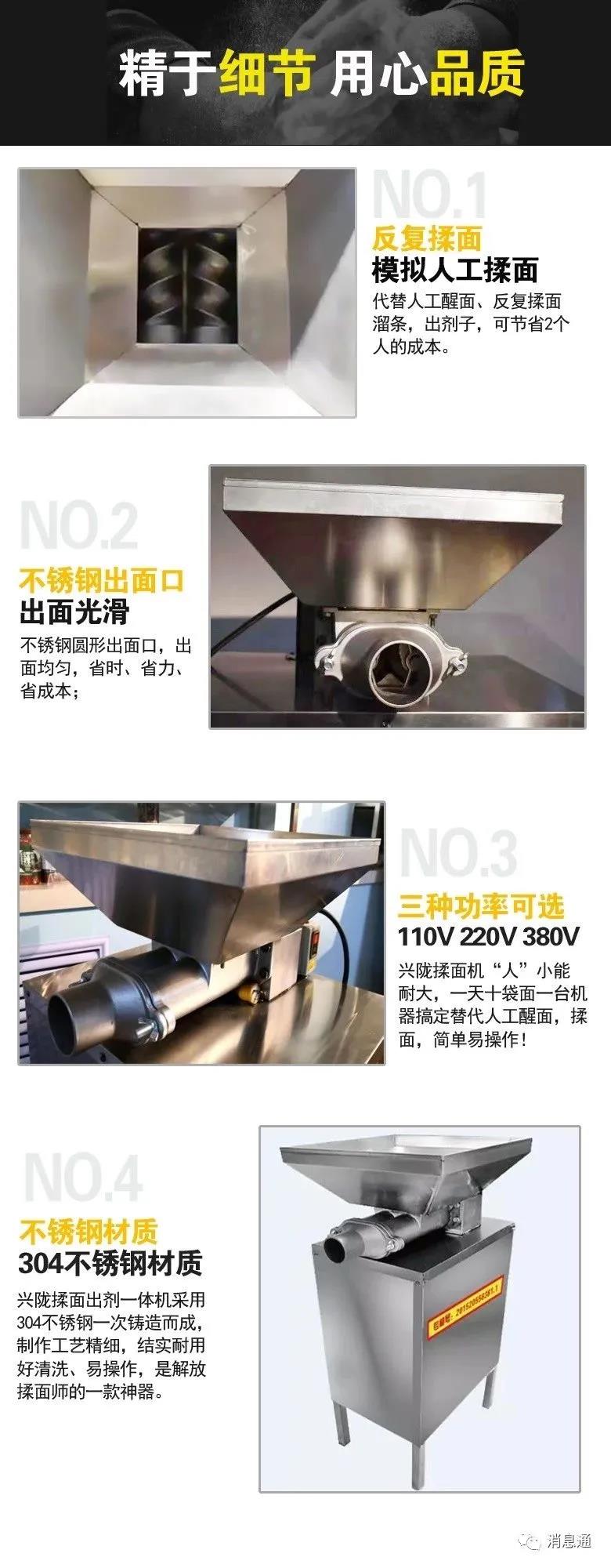 這款揉面出劑一體機參照手工揉面、溜條、出劑的過程研發(fā)而成,既可以揉面,同時可以制作出拉面的面劑子。