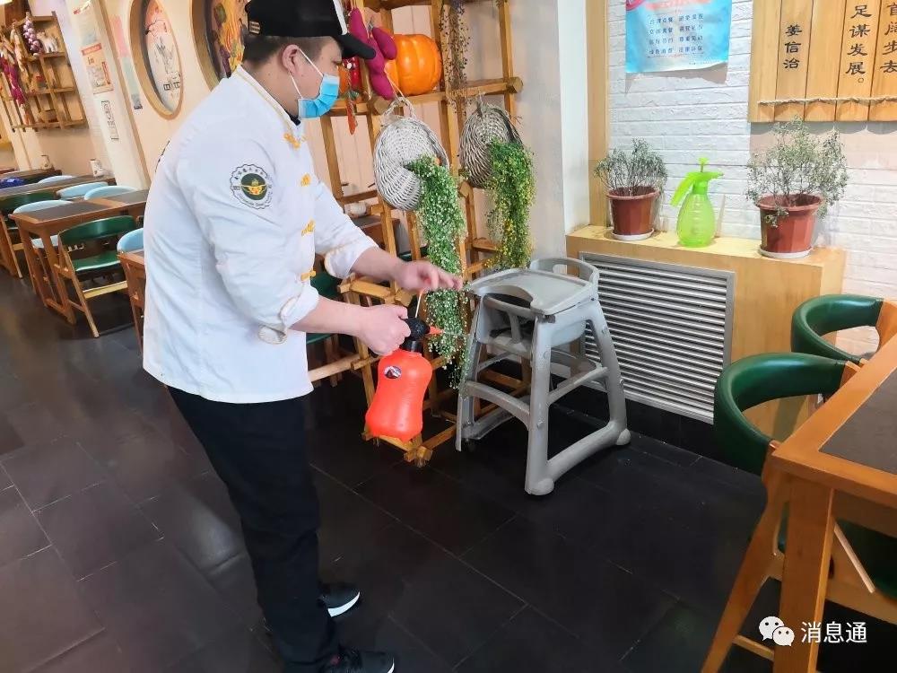 4、餐廳在開始營業(yè)前已經(jīng)進行了3天的消毒,在營業(yè)時定時專人噴撒消毒。
