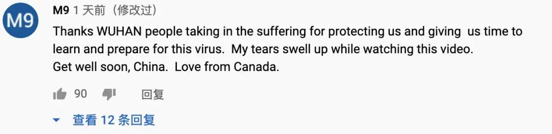 英國網(wǎng)友Bernadine Sarah W評論:“感謝這部紀(jì)錄片,它為我們提供了抗擊疫情的寶貴經(jīng)驗。非常感謝武漢人民用他們的獻身精神阻止了病毒進一步傳播。我們應(yīng)該向他們學(xué)習(xí)。感謝武漢人民!