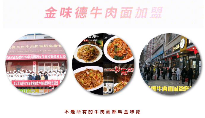 專門創(chuàng)立“鑫味德”蘭州牛肉拉面品牌,以“成就更多人的牛肉拉面夢(mèng)想”為宗旨,通過(guò)資金、人才、設(shè)備、原材料、信息等資源整合,來(lái)為創(chuàng)業(yè)者提供專業(yè)化、多樣化的創(chuàng)業(yè)服務(wù)!蚌挝兜隆迸H饫嫫放仆ㄟ^(guò)對(duì)蘭州牛肉面文化展示、現(xiàn)場(chǎng)體驗(yàn)、旅游接待、職業(yè)培訓(xùn)、人才輸出、產(chǎn)品研發(fā)、標(biāo)準(zhǔn)規(guī)范、品牌聯(lián)盟、創(chuàng)新創(chuàng)業(yè)等方面的挖掘支持,努力為創(chuàng)業(yè)者打造穩(wěn)健的創(chuàng)業(yè)投資平臺(tái)。