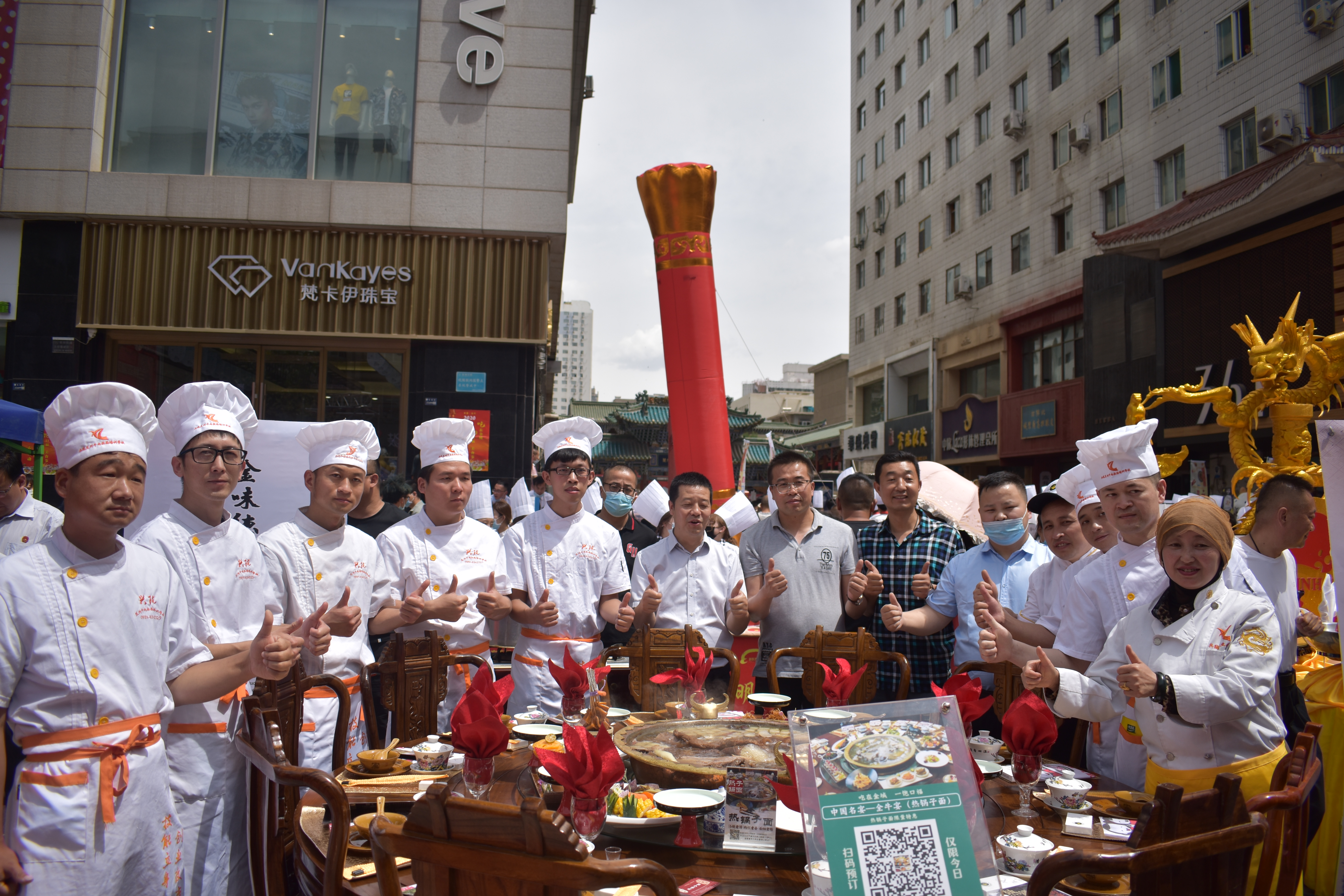 現(xiàn)場還展示了蘭州牛肉拉面始祖——"熱鍋子",熱氣騰騰、香味撲鼻,受到現(xiàn)場領(lǐng)導(dǎo)以及消費者高度好評;熱鍋子由中國烹飪大師、中國烹飪藝術(shù)家梁順儉首創(chuàng),在2018年中國烹飪協(xié)會(鄭州)面向世界發(fā)布的中國省籍名菜名宴中,獲得中國地域特色名宴、以蘭州牛肉拉面為龍頭的小吃宴——全(牦)牛宴。2019年中國敦煌國際文博會上獲得一帶一路特色名宴----牦牛宴。