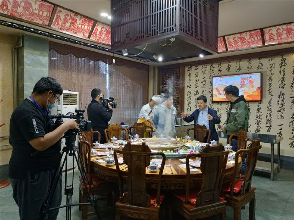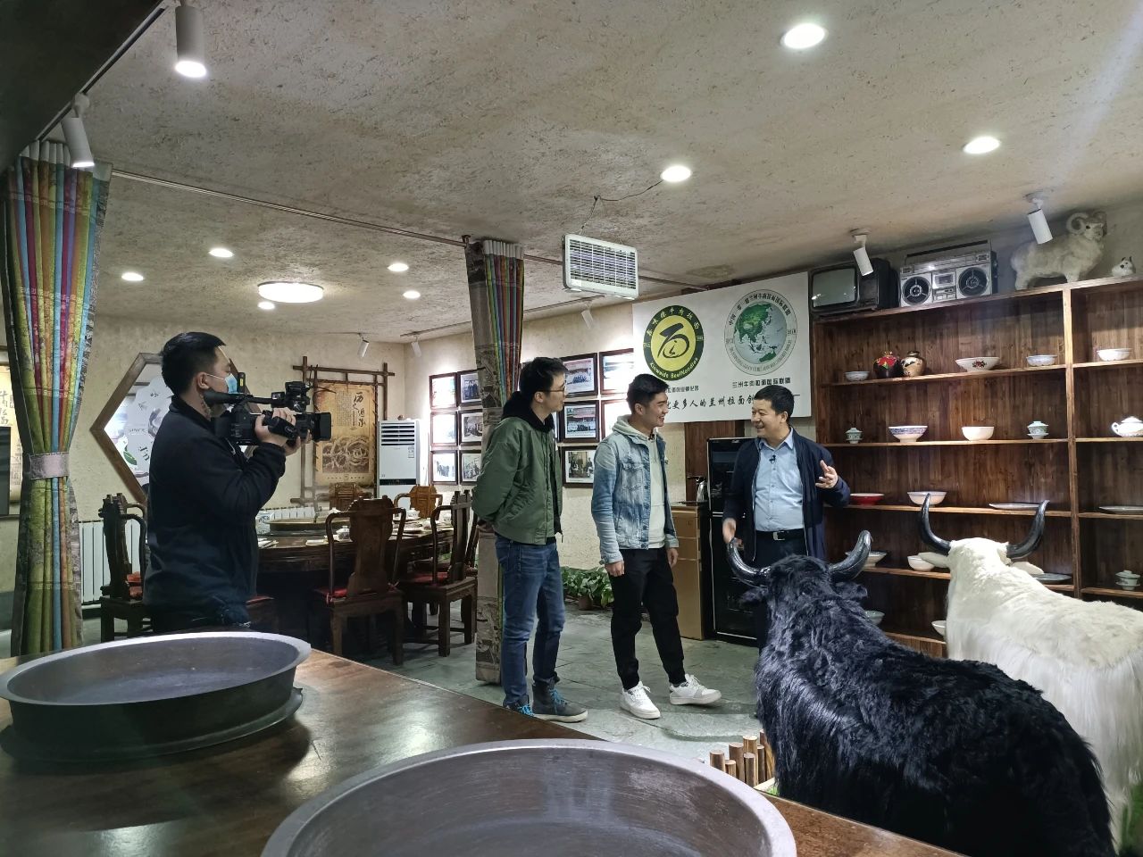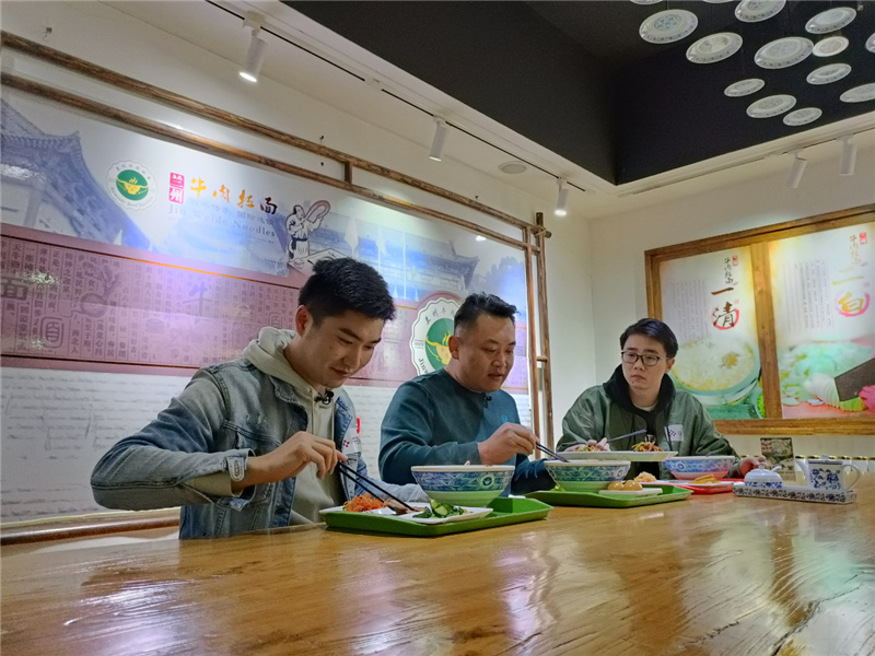 央視直播組來到中國蘭州牛肉拉面體驗工坊直播蘭州牛肉拉面文化。