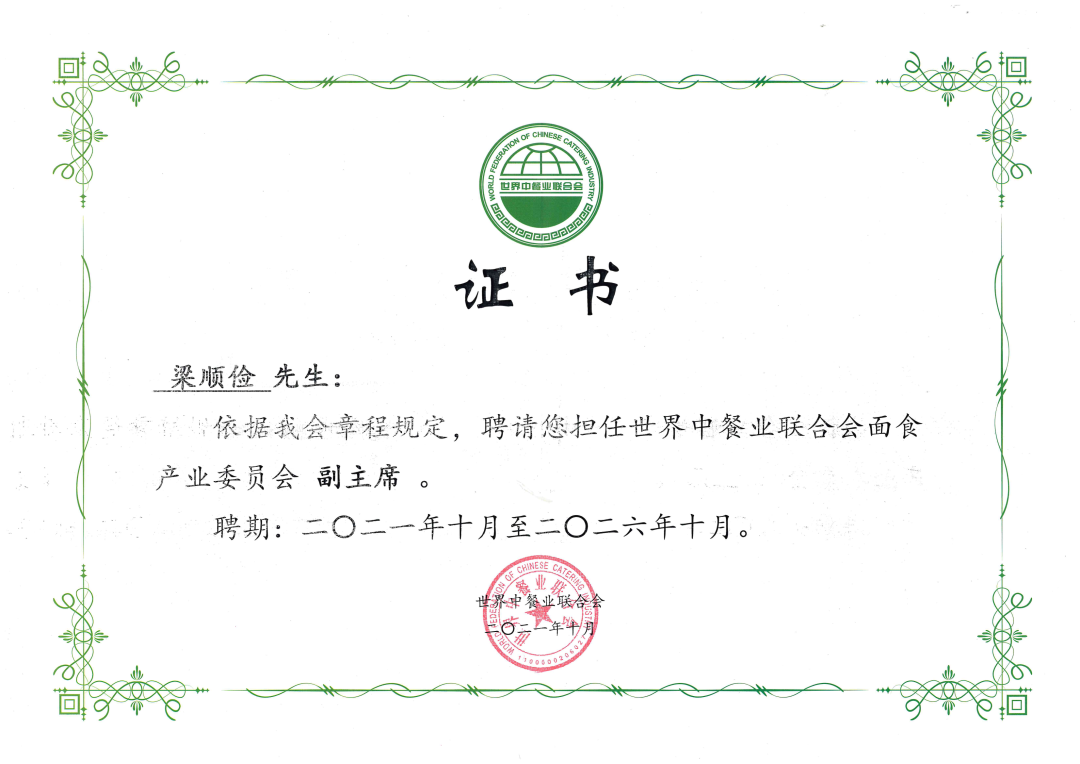 蘭州牛肉拉面國際聯(lián)盟主席、甘肅省烹飪協(xié)會副會長、蘭州牛肉拉面行業(yè)協(xié)會副秘書長、蘭州市人民對外友好協(xié)會副會長、平?jīng)鲳氿浢嫘袠I(yè)協(xié)會會長、蘭州烹飪協(xié)會副會長、興隴蘭州牛肉拉面國際商學(xué)院副院長、甘肅興隴蘭州牛肉拉面職業(yè)培訓(xùn)學(xué)校校長、《蘭州牛肉拉面寶典》主編、金味德拉面文化產(chǎn)業(yè)集團董事長、蘭州資源環(huán)境職業(yè)技術(shù)學(xué)院客座教授、興隴蘭州牛肉拉面國際商學(xué)院副院長、蘭州金藍(lán)領(lǐng)領(lǐng)軍人才、梁順儉蘭州牛肉拉面大師工作室首席大師、蘭州市旅游協(xié)會副會長,被世界中餐業(yè)聯(lián)合會聘請為世界中餐業(yè)聯(lián)合會面食專業(yè)委員會副主席,并被授予““面食產(chǎn)業(yè)大工匠”榮譽稱號。