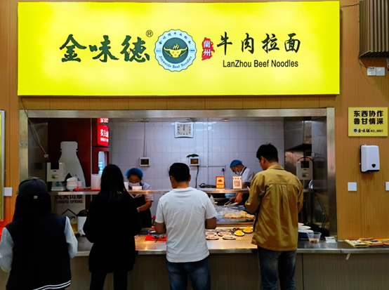 山東是東西部協(xié)作對口幫扶甘肅的省份。多年來,山東堅(jiān)持“推動區(qū)域協(xié)調(diào)發(fā)展、促進(jìn)共同富!,書寫了感人至深的“魯甘山海情”。為鞏固魯甘東西部協(xié)作成果,積極推動西北脫貧地區(qū)更多農(nóng)副產(chǎn)品進(jìn)入學(xué)校食堂,助力鄉(xiāng)村振興,改善食堂伙食,在山東省協(xié)作甘肅干部管理組、山東省教育發(fā)展服務(wù)中心的大力支持下,我校食堂專門設(shè)立了幫扶窗口,將金味德蘭州牛肉拉面引入食堂,讓更多師生品嘗到正宗原產(chǎn)、經(jīng)濟(jì)實(shí)惠的“甘味”特色美食——蘭州牛肉拉面。金味德集團(tuán)將在拉面師培養(yǎng)、制作工藝等方面提供技術(shù)支持,并提供原材料供應(yīng)保障,讓咱的牛肉拉面“出了蘭州還是這個味兒”。