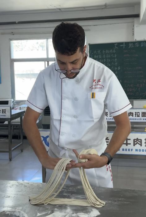 越來越多的外國友人來到蘭州學習蘭州牛肉拉面技術