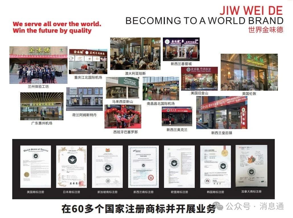 在這碗面的“出海記”中,金味德可謂立下了汗馬功勞。自2008年至今,金味德蘭州牛肉拉面陸續(xù)在全球60余個國家注冊商標,堅守蘭州牛肉拉面本源特色,通過研學、培訓、扶持創(chuàng)業(yè)等方式,全球會員店達1500余家,創(chuàng)立海外蘭州牛肉拉面研學體驗培黎工坊10余個。“金味德蘭州拉面培黎工坊”經(jīng)商務部、中央宣傳部、文化和旅游部、廣電總局聯(lián)合評審,項目被認定為國家文化出口重點項目。如今,蘭州牛肉拉面不僅僅是一道美食,更是一張流動的蘭州文化名片。